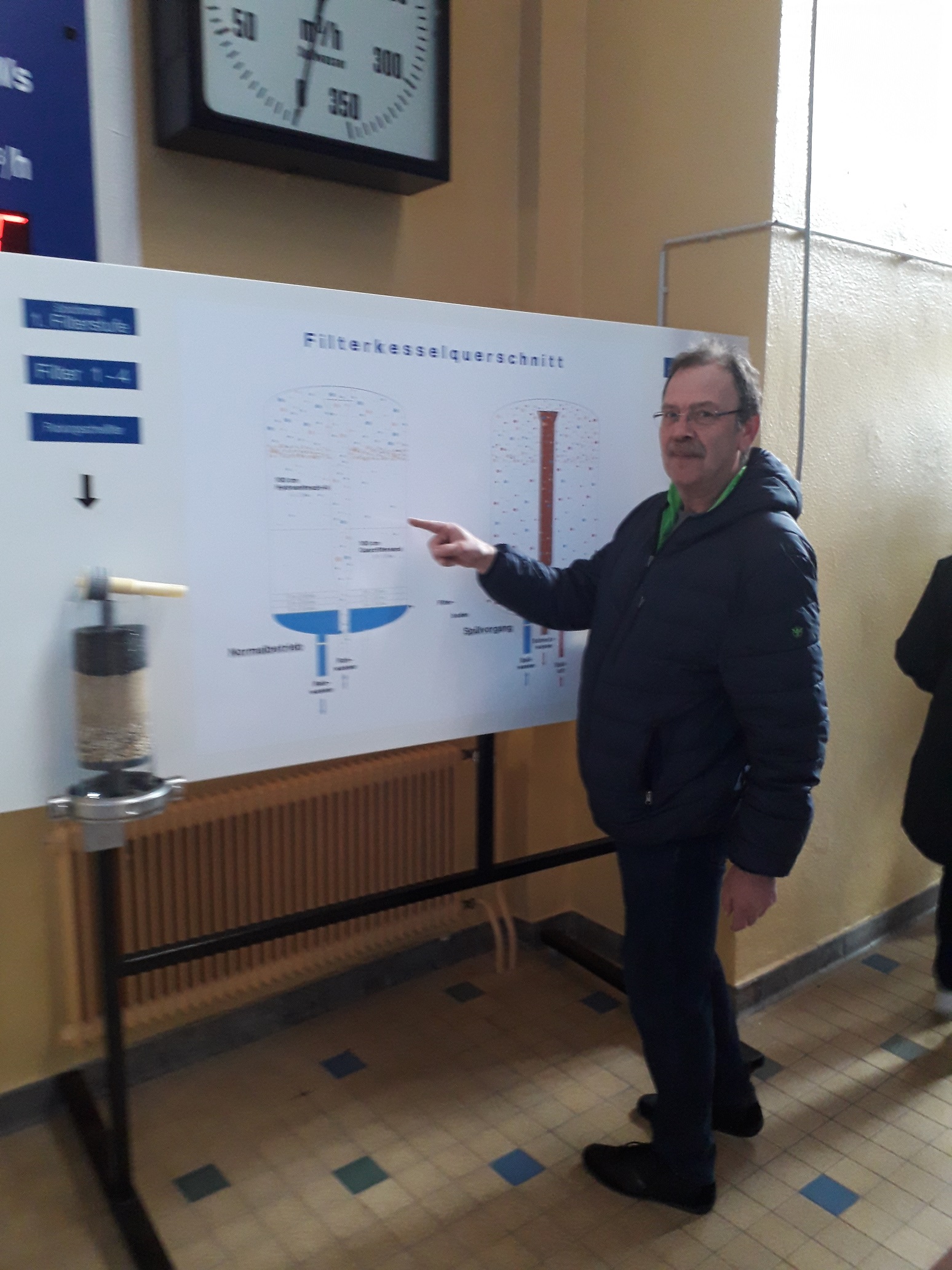 Während der Führung konnte Hr. Dr.-Ing. Lehmkühler neben den technischen Abläufen und den chemischen Vorgängen auch auf die Schwierigkeiten der Wasserversorgung eingehen, die in Hellenthal unter Anderem durch die Geologie entstehen. Aus der jüngsten Geschichte musste der Wasserverband sich auch mit enormen Kostensteigerungen auseinandersetzen, die durch die Energiekrise zustande kamen. Der Wasserverband versucht als nicht-gewinnorientiertes Unternehmen den Bürgern stets eine günstige Versorgung zu ermöglichen.